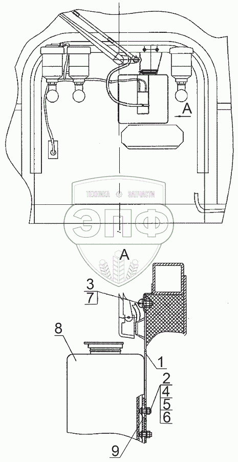Каталог запасных частей к технике: МТЗ БЕЛАРУС 3522.5. Установка стеклоомывателя переднего