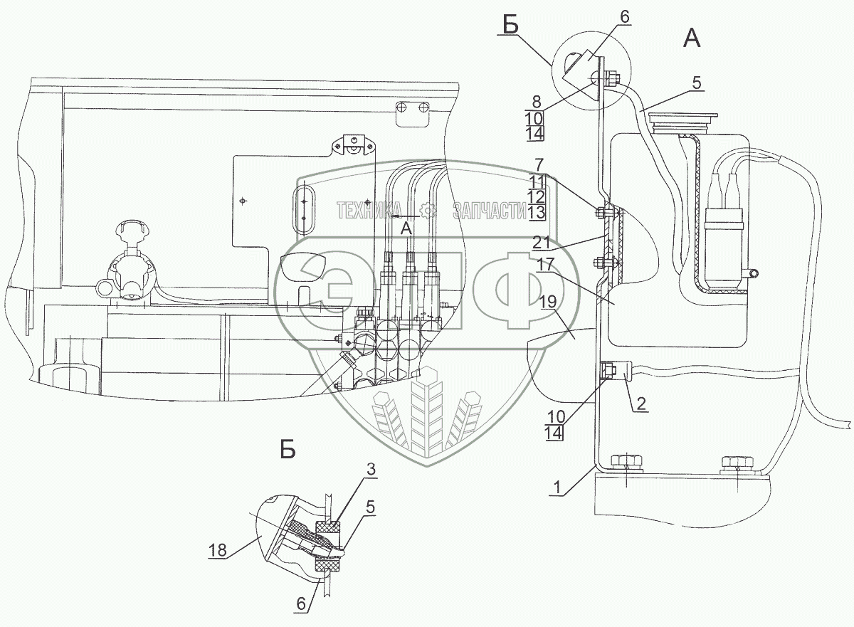 Каталог запасных частей к технике: МТЗ БЕЛАРУС 3522.5. Установка стеклоомывателя заднего