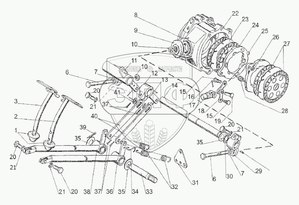 Каталог запасных частей к технике: МТЗ Беларус-422.1. Тормоза. Управление тормозами