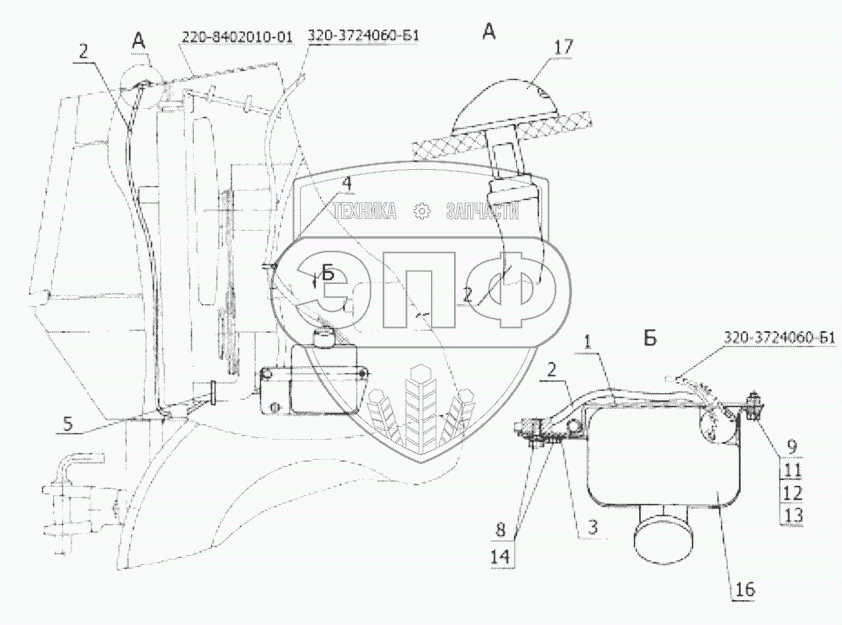 Каталог запасных частей к технике: МТЗ Беларус-422.1. Установка омывателя