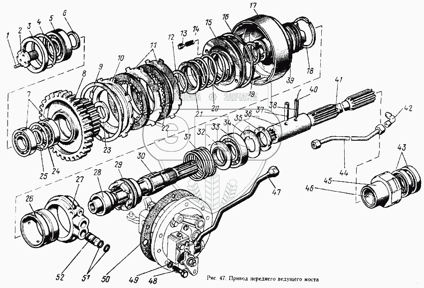 Каталог запасных частей к технике: МТЗ-100. Привод переднего ведущего моста
