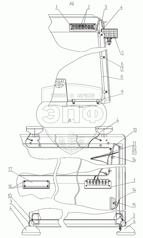 Каталог запасных частей к технике: МТЗ-1021.3. Установка фар рабочих