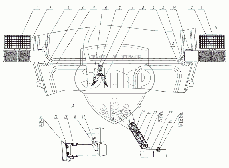 Каталог запасных частей к технике: МТЗ-1021.3. Установка фонарей передних