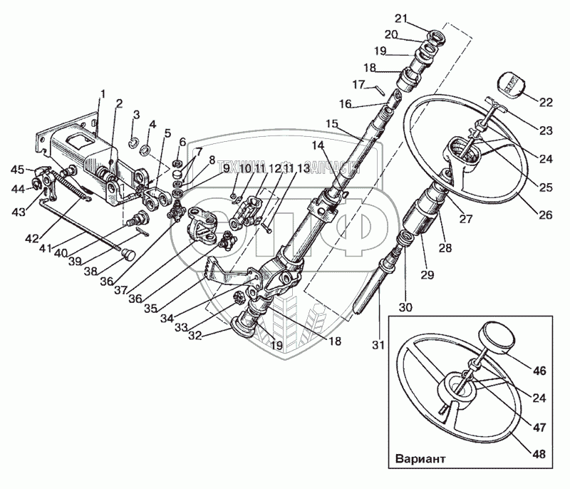 Каталог запасных частей к технике: МТЗ-1025.4. Колонка рулевая