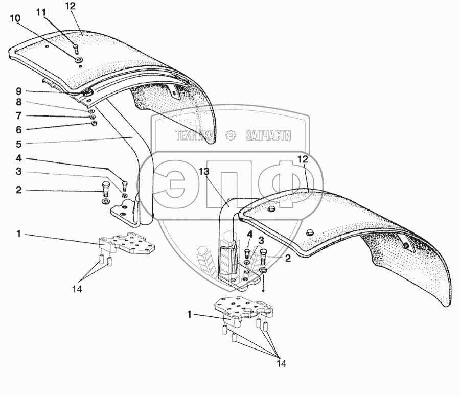 Каталог запасных частей к технике: МТЗ-1221.4. Крылья передних колес