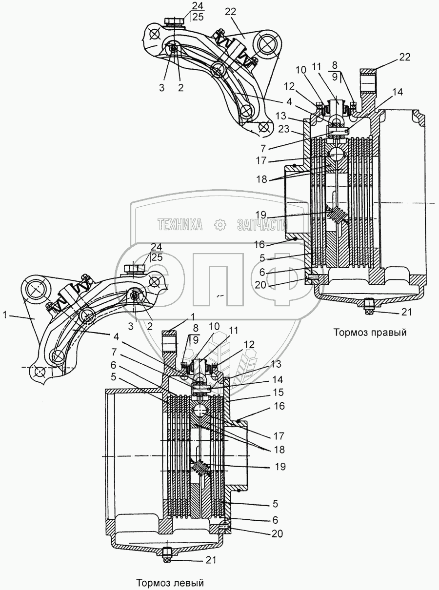 Каталог запасных частей к технике: МТЗ-1221.4. Тормоза «мокрые»