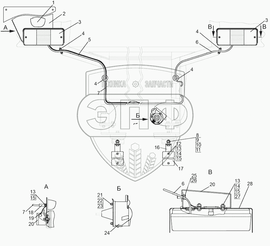 Каталог запасных частей к технике: МТЗ-1221.4. Установка фонарей задних
