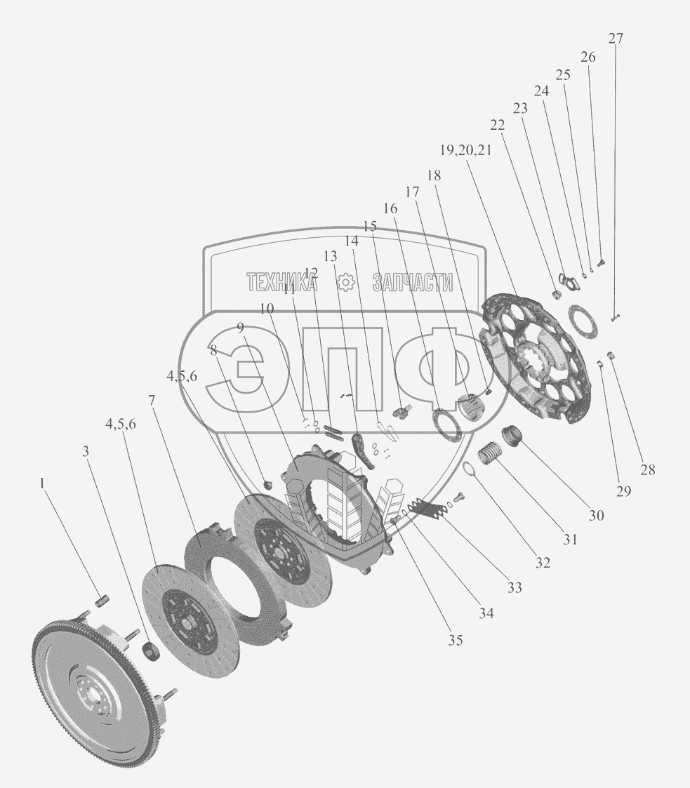 Каталог запасных частей к технике: МТЗ-1221.4. Установка сцепления 1523Д-1005009