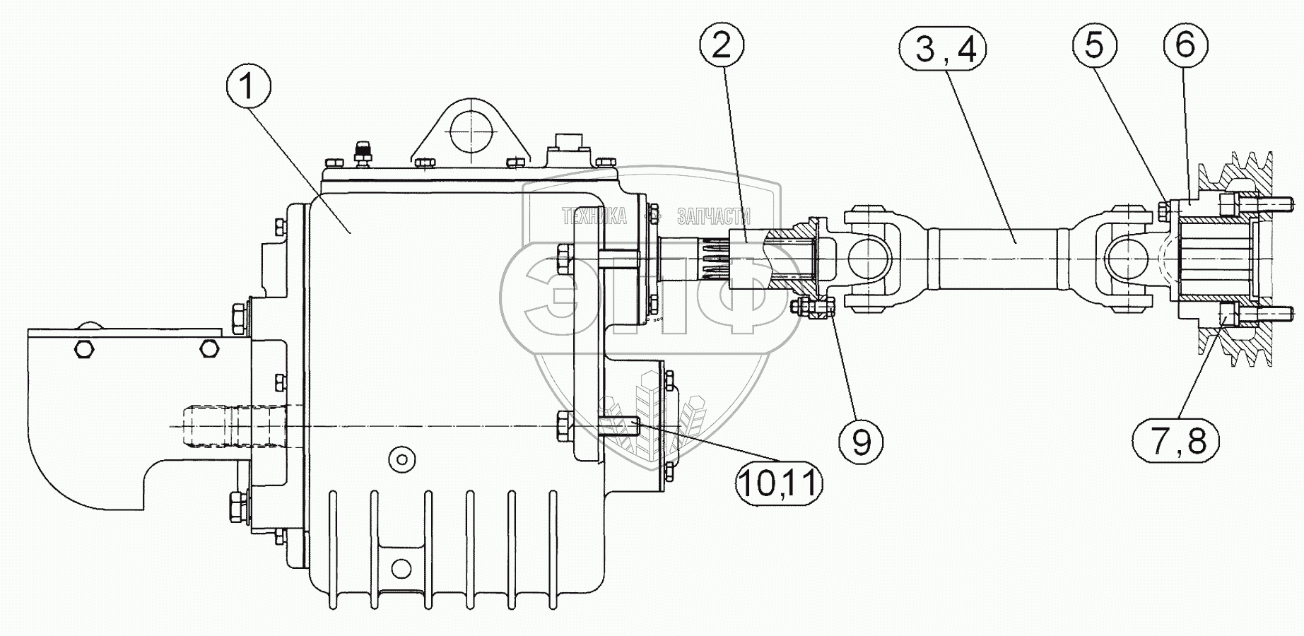 Каталог запасных частей к технике: МТЗ-1221.4. Вал отбора мощности передний