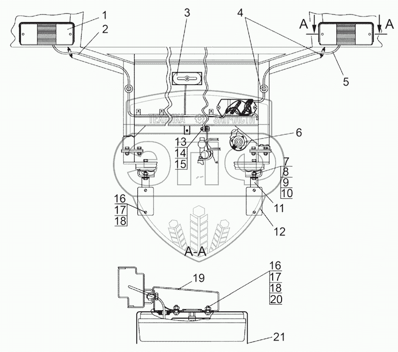 Каталог запасных частей к технике: МТЗ-1221.4. Установка фонарей задних