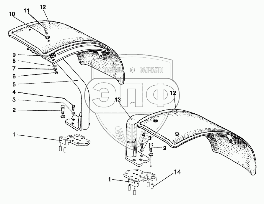 Каталог запасных частей к технике: МТЗ-1221.5. Крылья передних колес