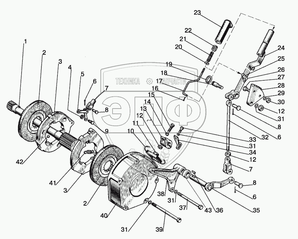 Каталог запасных частей к технике: МТЗ-1221.5. Управление стояночно-запасным тормозом