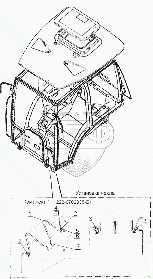 Каталог запасных частей к технике: МТЗ-1523. 1222-6702335-Б1 Установка чехла