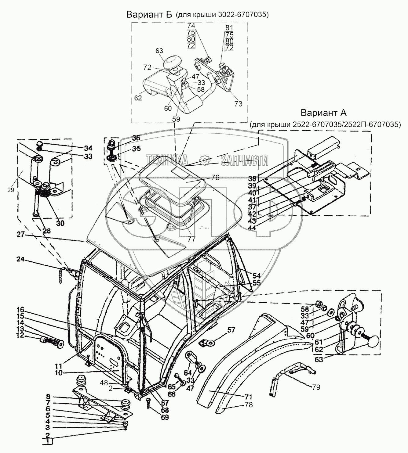Каталог запасных частей к технике: МТЗ-1523. Кабина трактора
