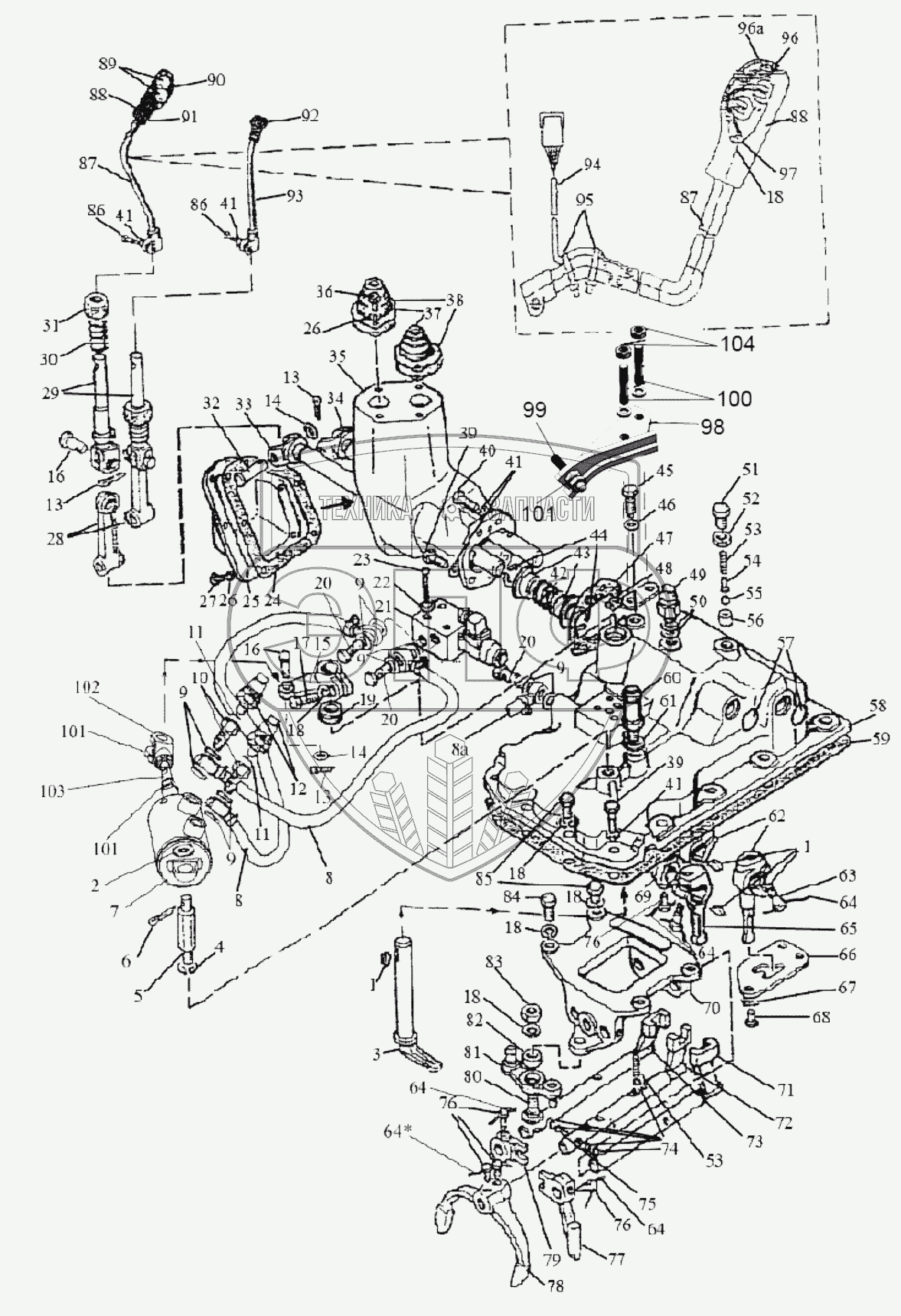 Каталог запасных частей к технике: МТЗ-1523. Механизм управления коробкой передач