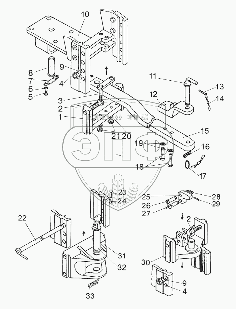 Каталог запасных частей к технике: МТЗ-1523. Тягово-сцепное устройство (варианты комплектации)