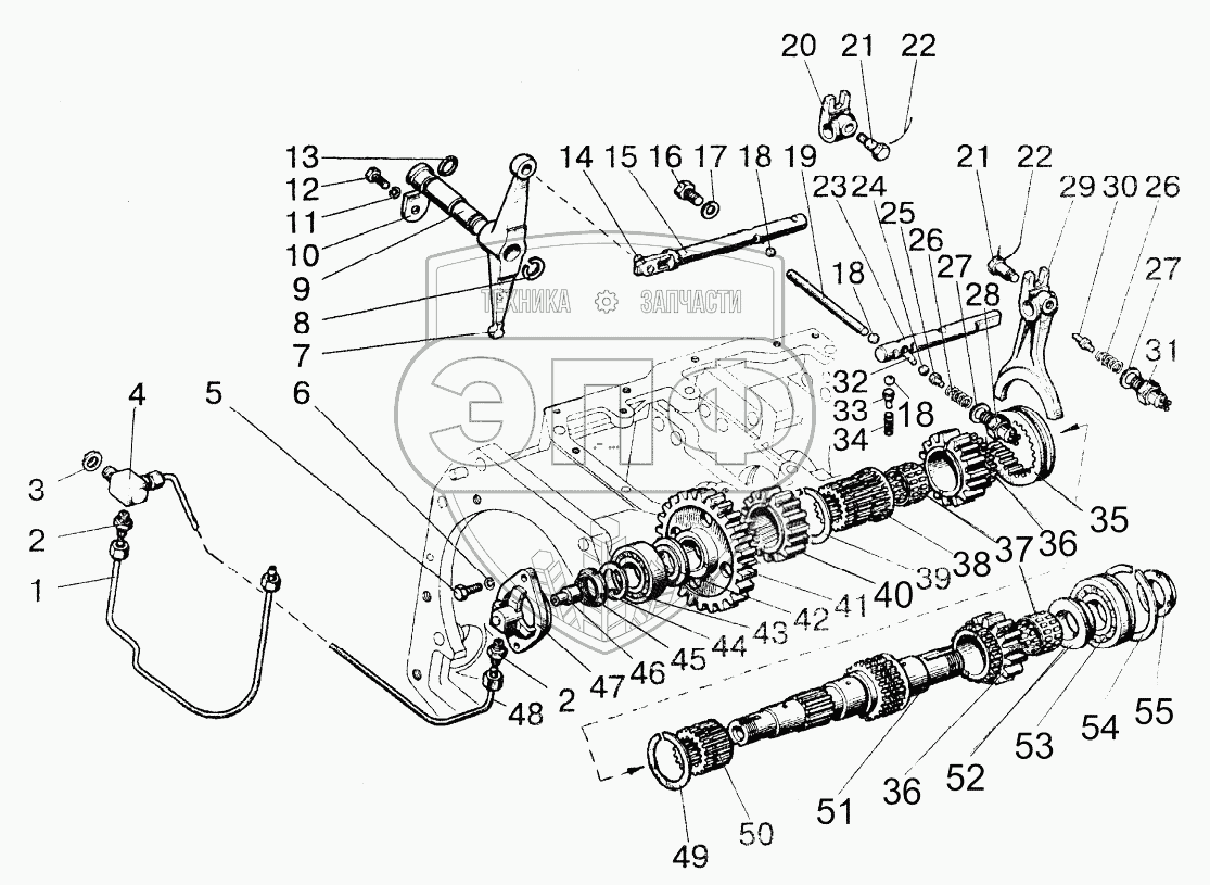 Каталог запасных частей к технике: МТЗ-1523. Вал пониженных передач