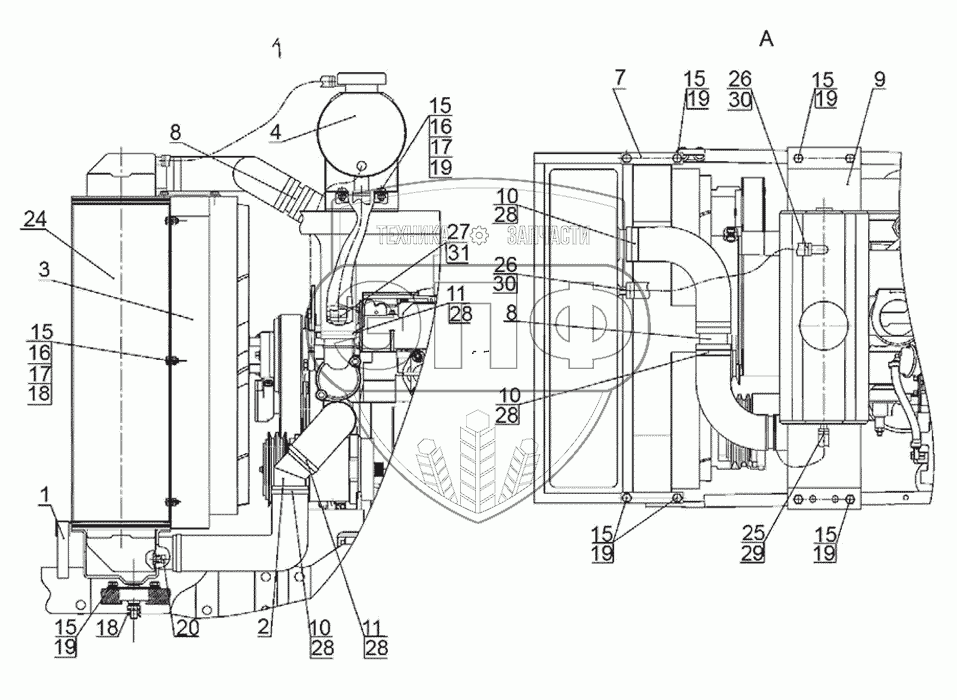 Каталог запасных частей к технике: МТЗ-1523.4. Блок охлаждения 1523Д-1301009