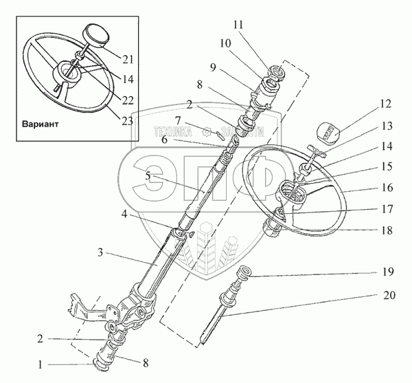 Каталог запасных частей к технике: МТЗ-1523.4. Колонка рулевая