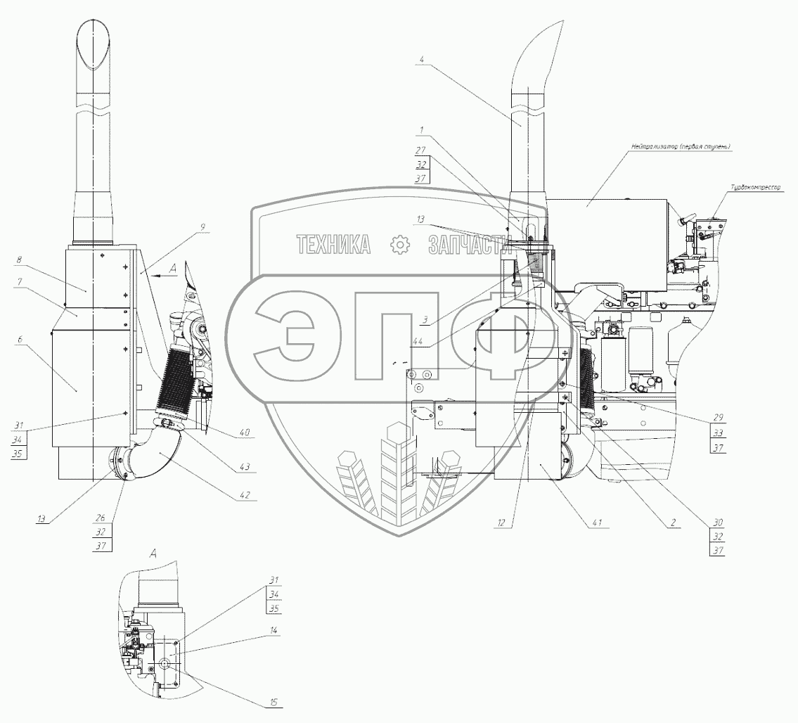 Каталог запасных частей к технике: МТЗ-1523.6. Установка глушителя