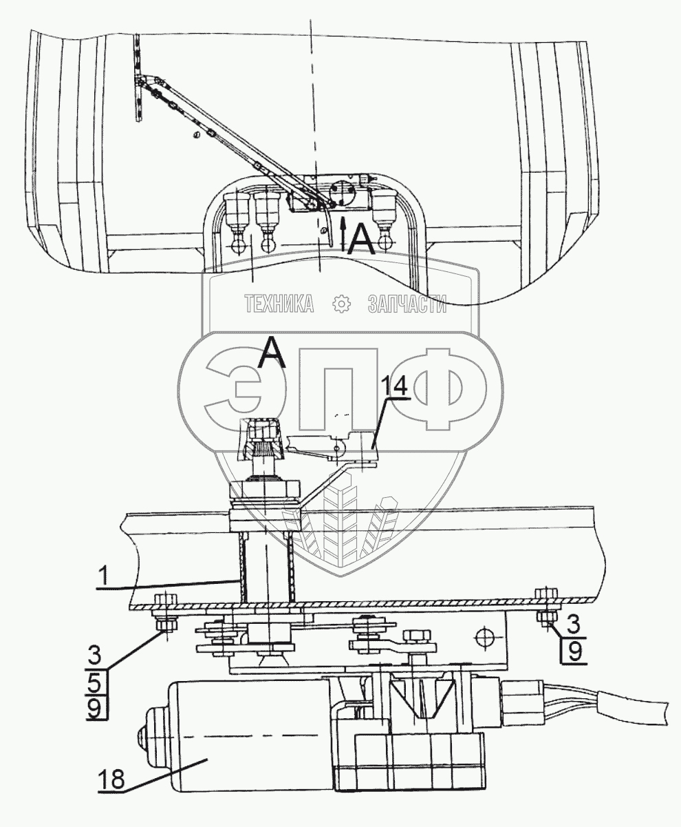 Каталог запасных частей к технике: МТЗ-1523.6. Установка переднего стеклоочистителя