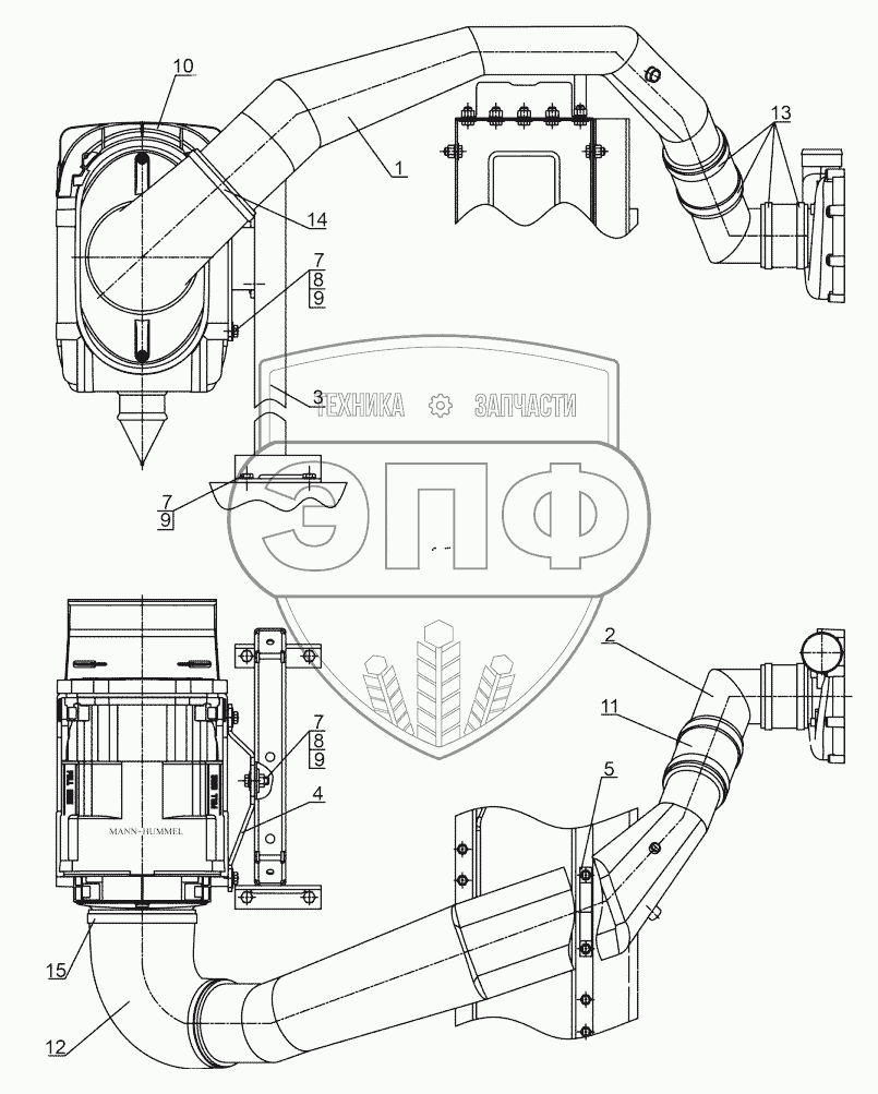 Каталог запасных частей к технике: МТЗ-1523.6. Установка воздухоочистителя