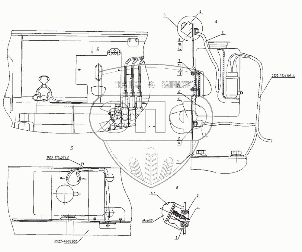Каталог запасных частей к технике: МТЗ-2522. Установка стеклоомывателя