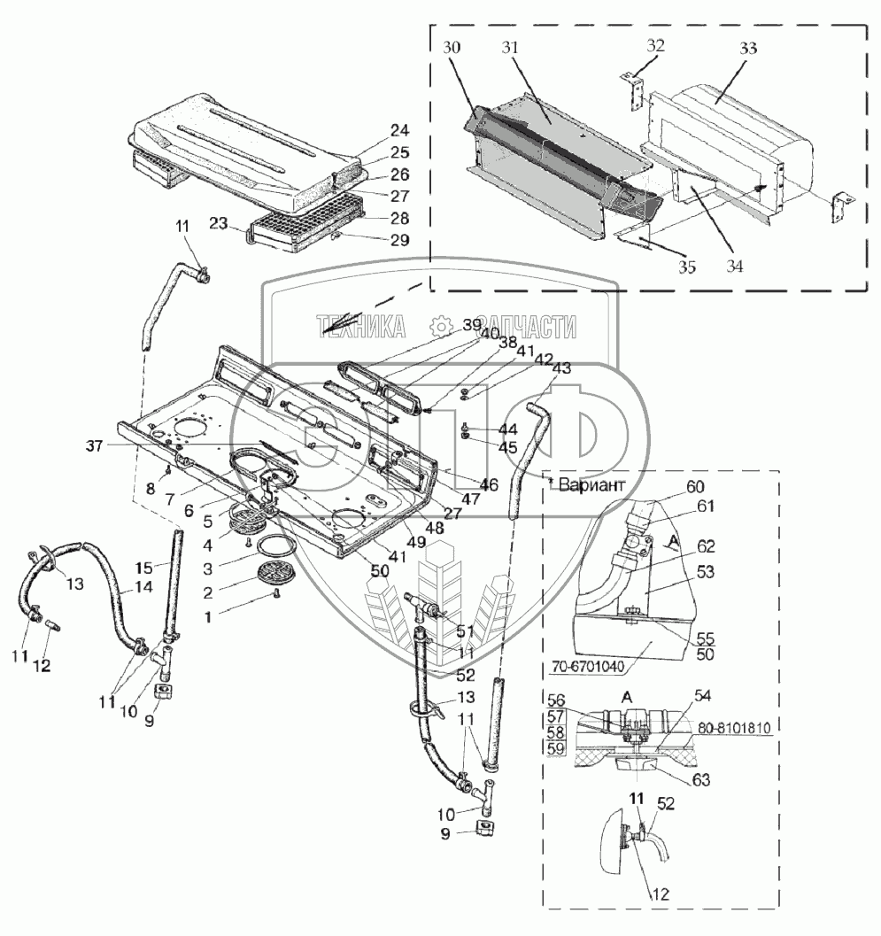 Каталог запасных частей к технике: МТЗ-80.1. Отопитель (вариант)