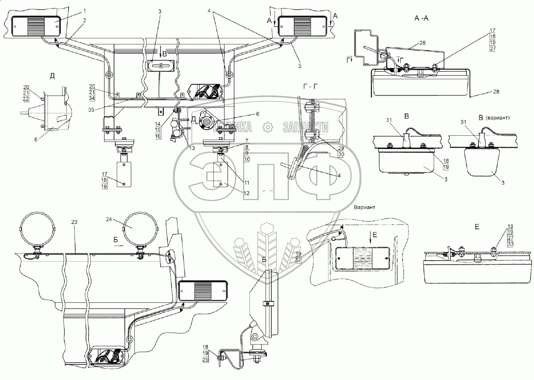 Каталог запасных частей к технике: МТЗ-80.1. Установка фонарей задних