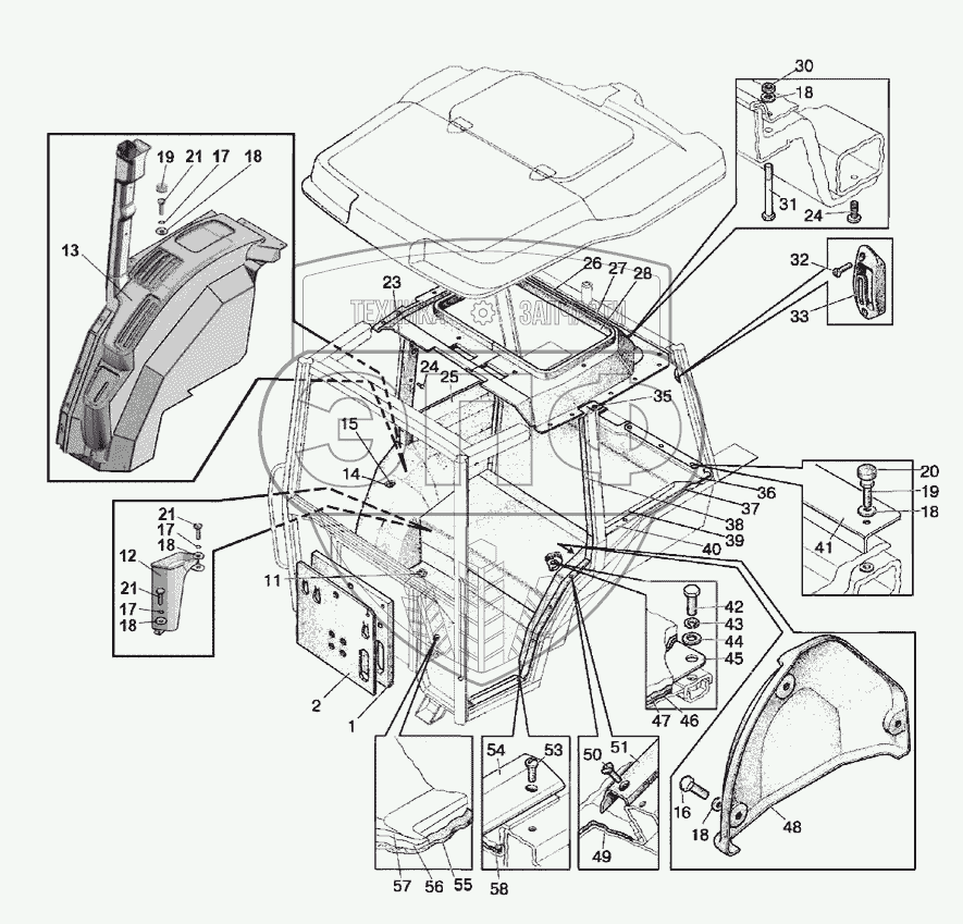 Каталог запасных частей к технике: МТЗ-821/921. Кабина трактора