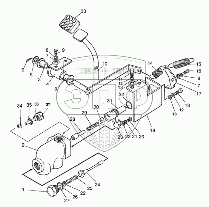 Каталог запасных частей к технике: МТЗ-826. Управление блокировкой дифференциала
