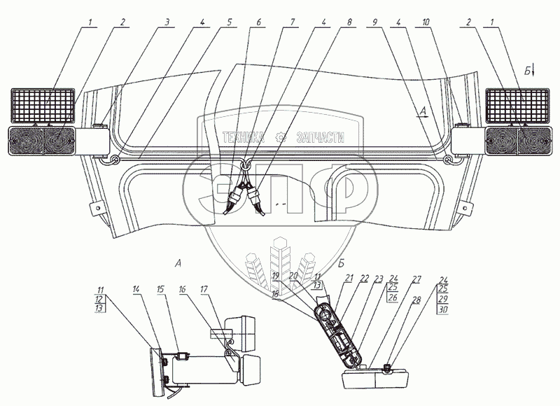 Каталог запасных частей к технике: МТЗ-826. Установка фонарей передних