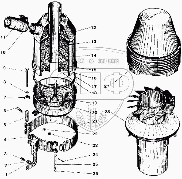 Каталог запасных частей к технике: МТЗ-900. Фильтр воздушный. Моноциклон