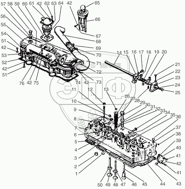 Каталог запасных частей к технике: МТЗ-900. Головка цилиндров. Клапаны и толкатели клапанов