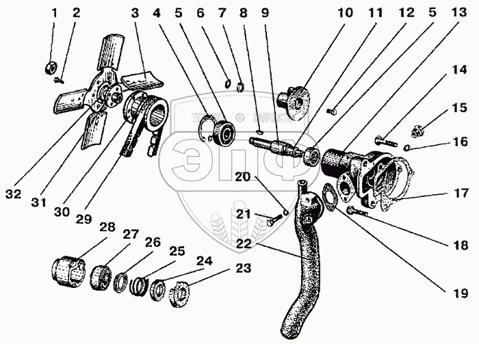 Каталог запасных частей к технике: МТЗ-900. Водяной насос. Вентилятор