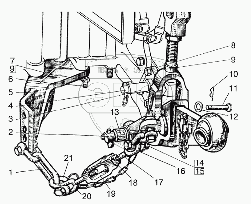 Каталог запасных частей к технике: МТЗ-90/92. Наружная блокировка нижних тяг