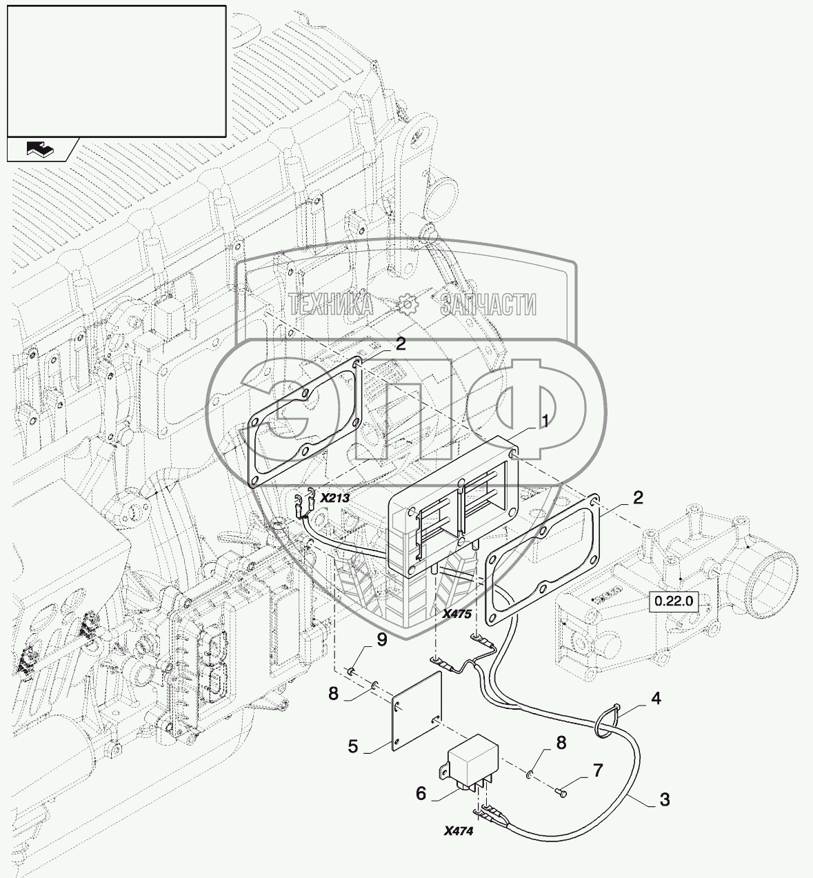 Каталог запасных частей к технике: New Holland CSX7080 (D660). BLOCK HEATER