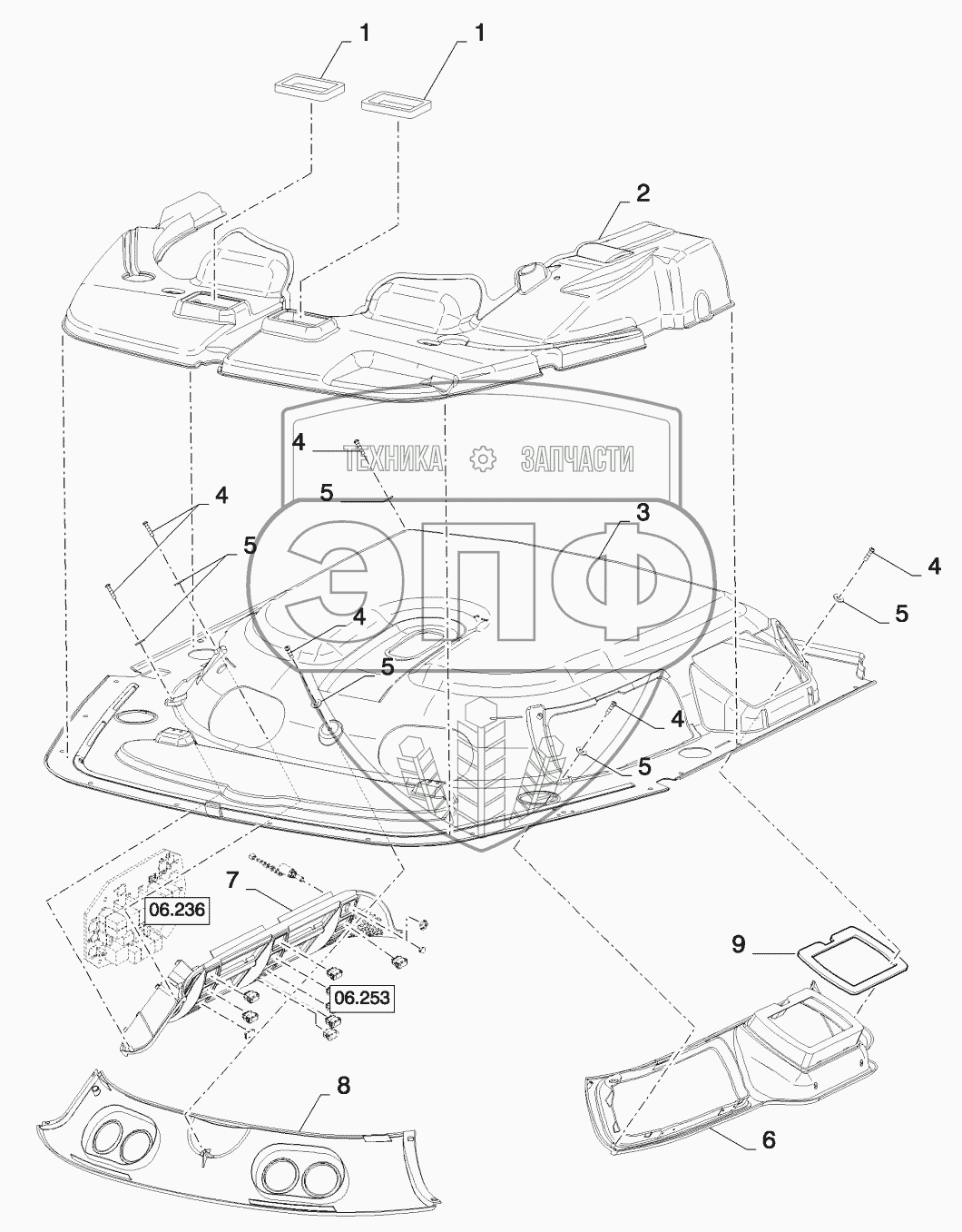 Каталог запасных частей к технике: New Holland CSX7080 (D660). CAB ROOF, INNER