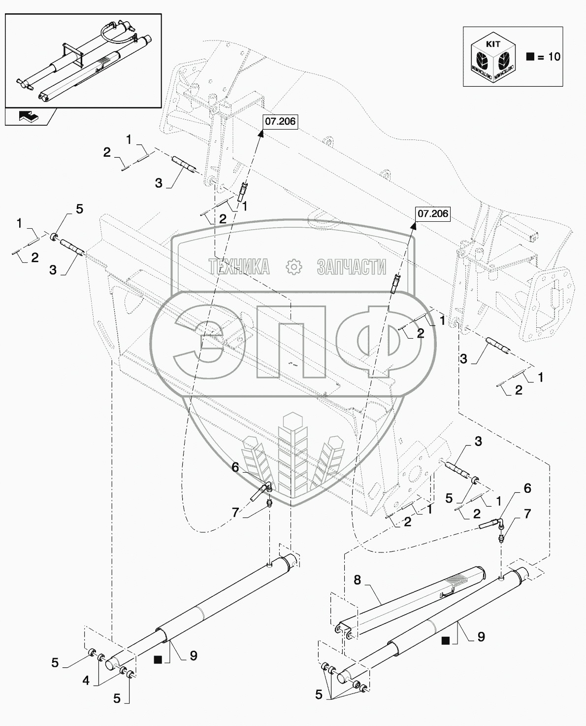 Каталог запасных частей к технике: New Holland CSX7080 (D660). CYLINDERS, STRAW ELEVATOR