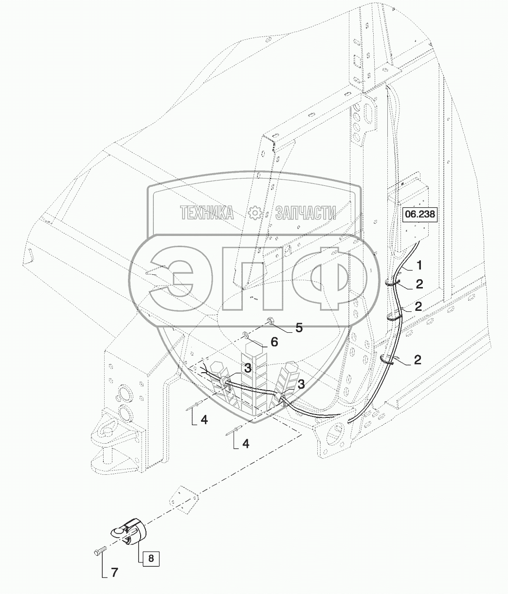 Каталог запасных частей к технике: New Holland CSX7080 (D660). ELECTRICS ON HITCH