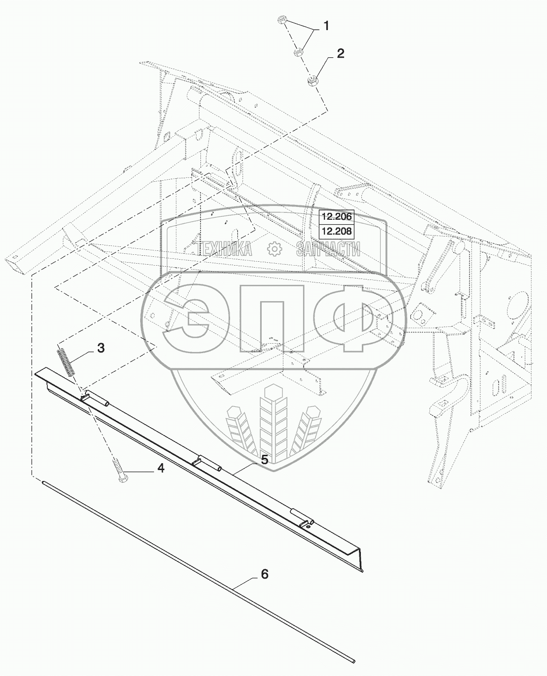 Каталог запасных частей к технике: New Holland CSX7080 (D660). SPRING LOADED DUSTPLATE
