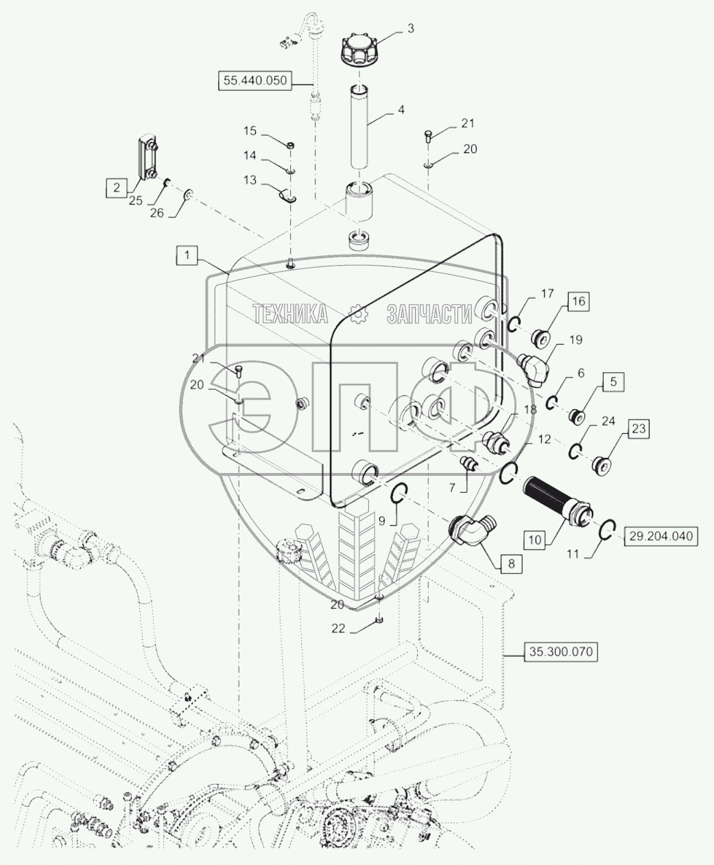 Каталог запасных частей к технике: New Holland Комбайн CR9080 E3 (часть 1). HYDRAULIC TANK