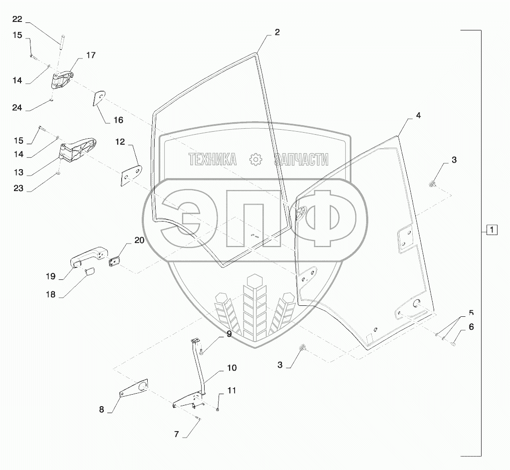 Каталог запасных частей к технике: New Holland T8. CAB, DOOR