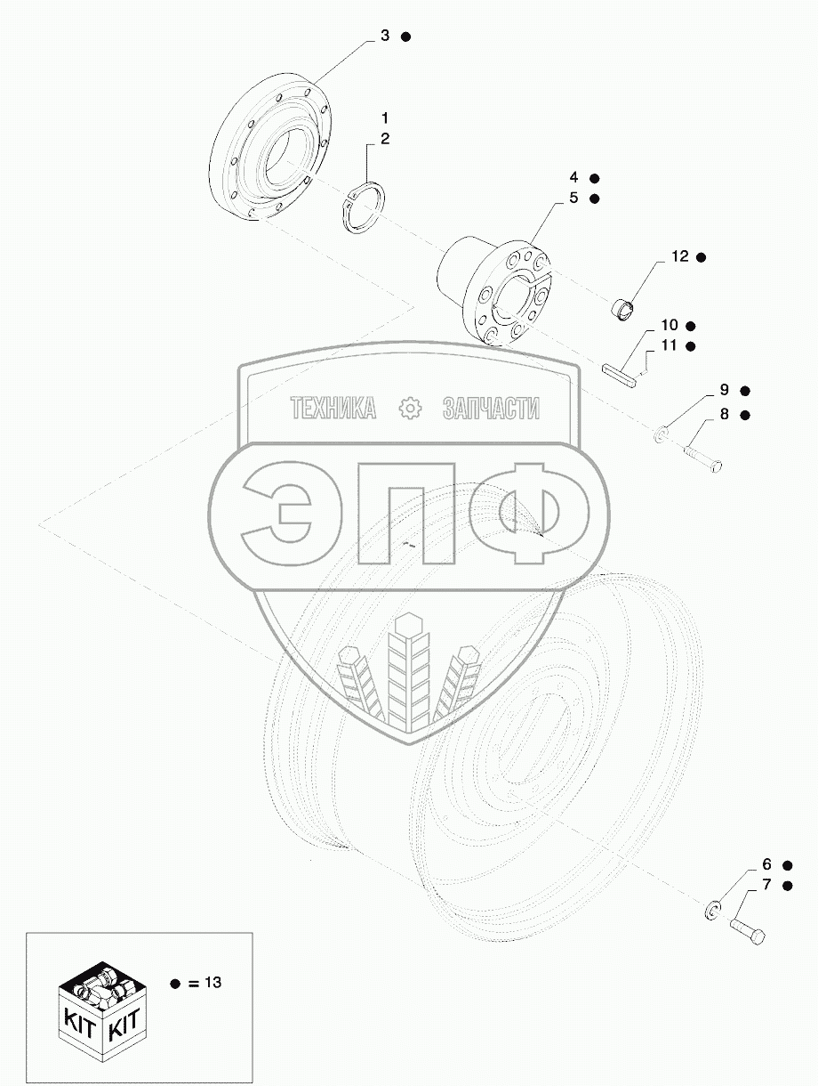 Каталог запасных частей к технике: New Holland T8. HUB ASSEMBLY, REAR WHEEL