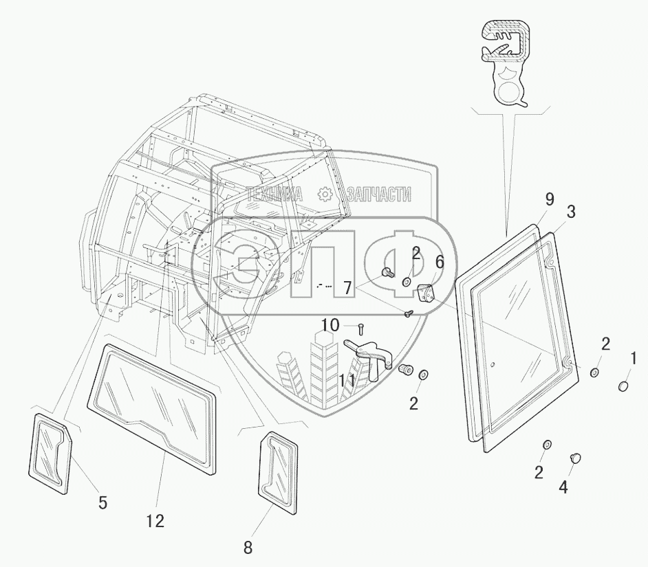 Каталог запасных частей к технике: New Holland TL5040. CAB - WINDOWS and WEATHER STRIPS