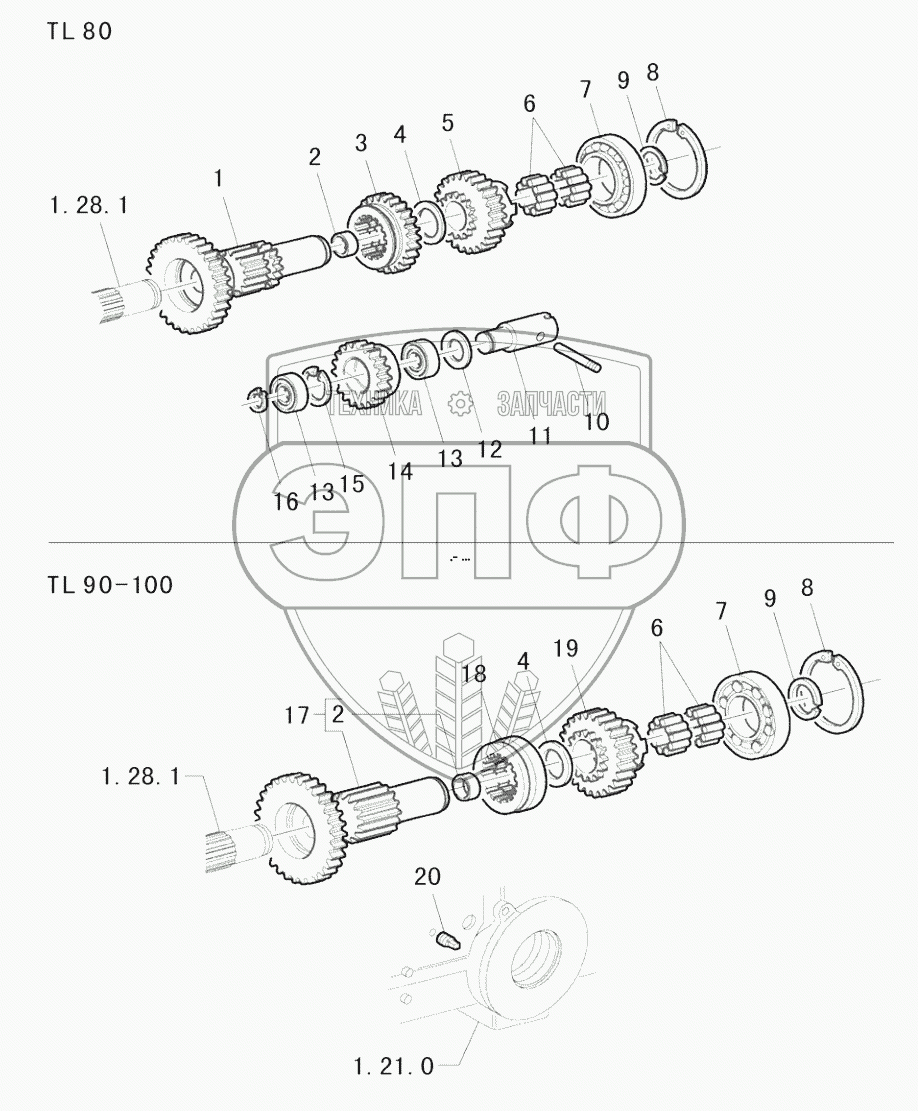 Каталог запасных частей к технике: New Holland TL5040. CENTRAL REDUCTION GEARS, MEDIUM ENGAGING GEAR