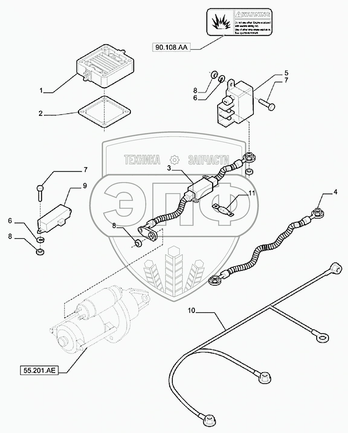 Каталог запасных частей к технике: New Holland TS6.110. 55.202.AY - THERMOSTART