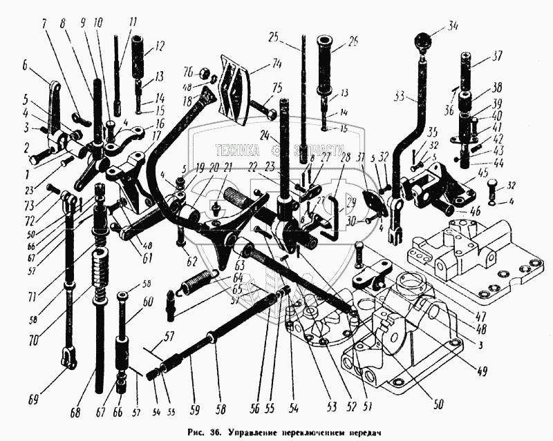 Каталог запасных частей к технике: ПТЗ К-700. Управление переключением передач