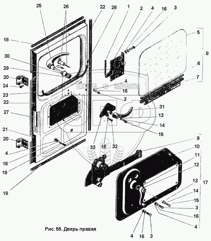 Каталог запасных частей к технике: ПТЗ К-701. Дверь правая