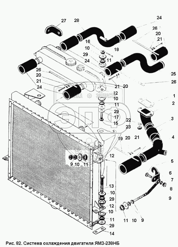 Каталог запасных частей к технике: ПТЗ К-701. Система охлаждения двигателя ЯМЗ-238НБ